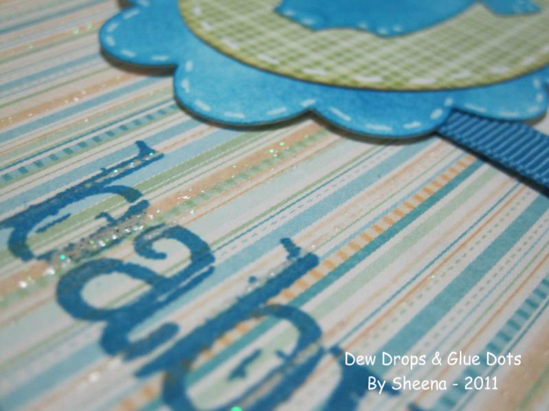 I made this baby card for my sister who will be attending a baby shower for a dear friend of hers. She is expecting a Boy. At first my sister was going to buy a card..(um hello your sister makes cards, why buy one?) hehe. So I made her this quick card. It turned out simple, but cute.